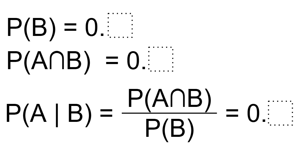 Directions: Using the digits 0 to 9, at most one time each, place a digit in each box to make the equations true. Assume A and B are events in the same sample space.
