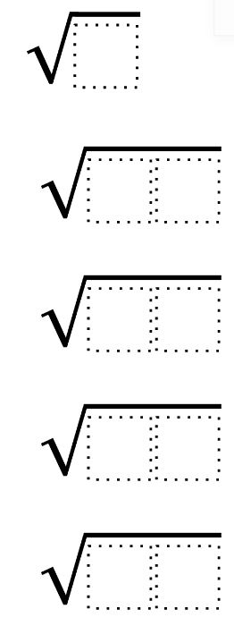 Directions: Using the digits 1 to 9 at most one time each, place a digit in each box to create 3 rational and 2 irrational numbers.